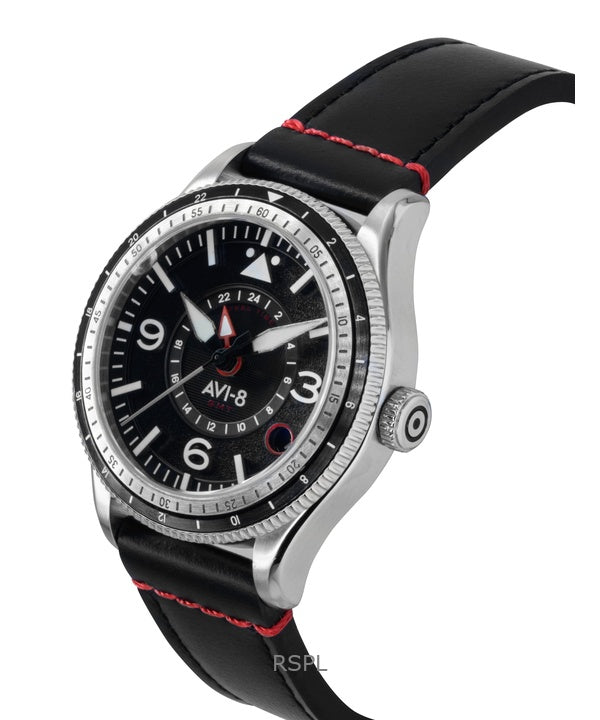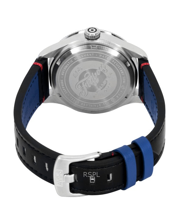 AVI-8 Flyboy Airmaster GMT Leather Strap Engine Black Dial Automatic AV-4128-01 Men's Watch