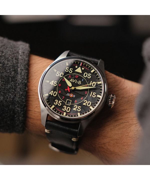 AVI-8 Hawker Hurricane Kenley Clowes Automatic Black Dial AV-4097-03 Mens Watch