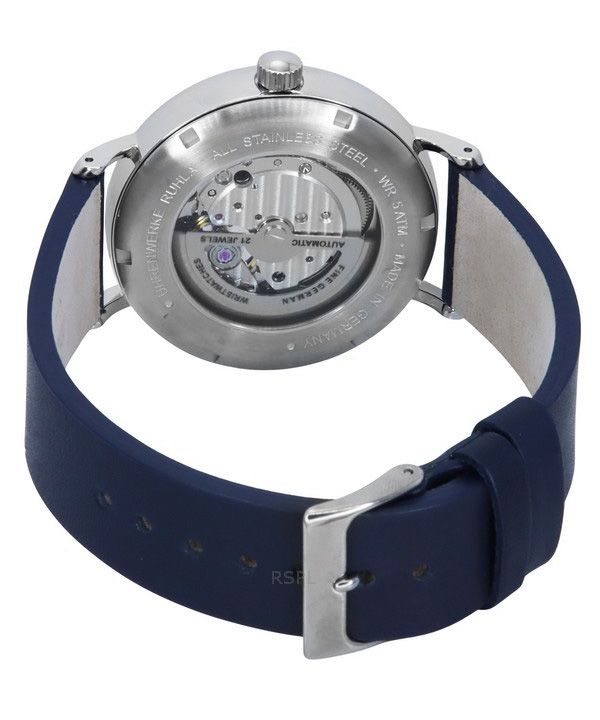 Bauhaus Classic Blue Leather Strap Dark Blue Open Heart Dial Automatic 21663 Men's Watch