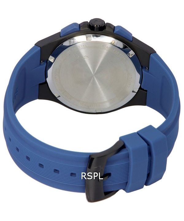 Bulova Maquina Chronograph Black Dial Blue Strap Quartz 98B380 100M Men's Watch