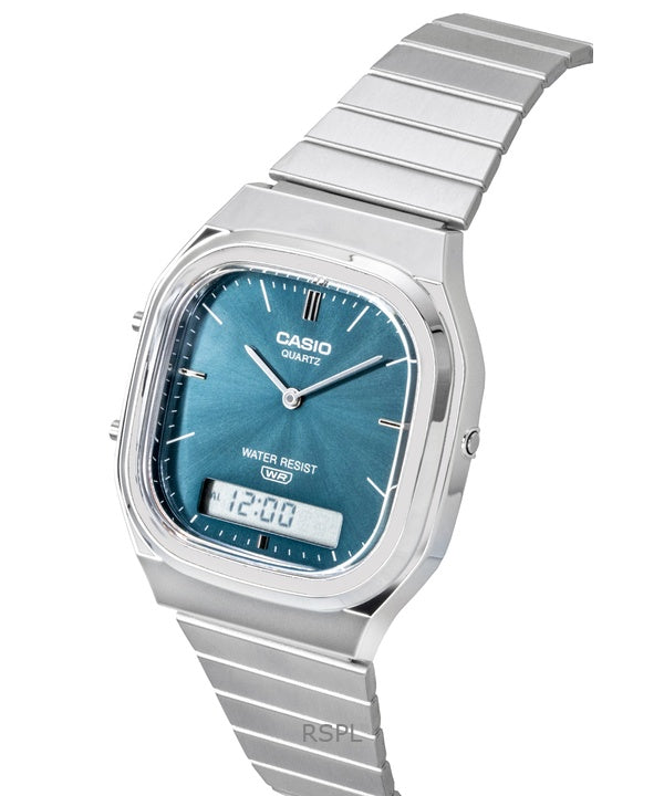 Casio Vintage Analog Digital Stainless Steel Sky Blue Dial Quartz AQ-240E-3A Unisex Watch