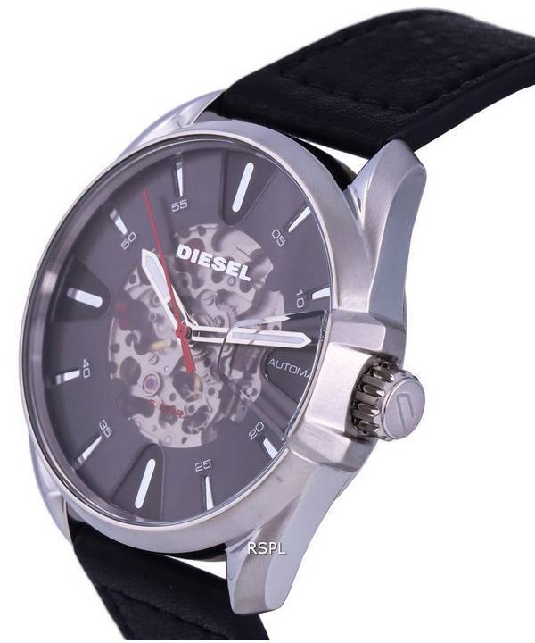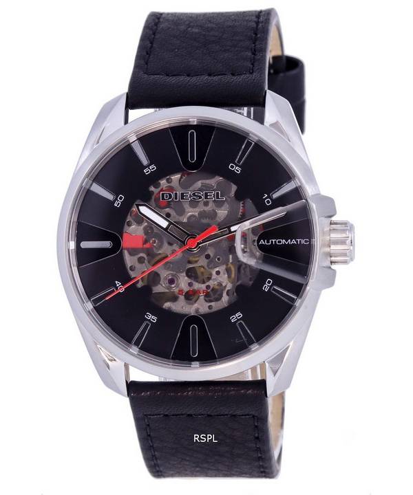 Diesel MS9 Skeleton Leather Strap Black Dial Automatic DZ1966 Mens Watch