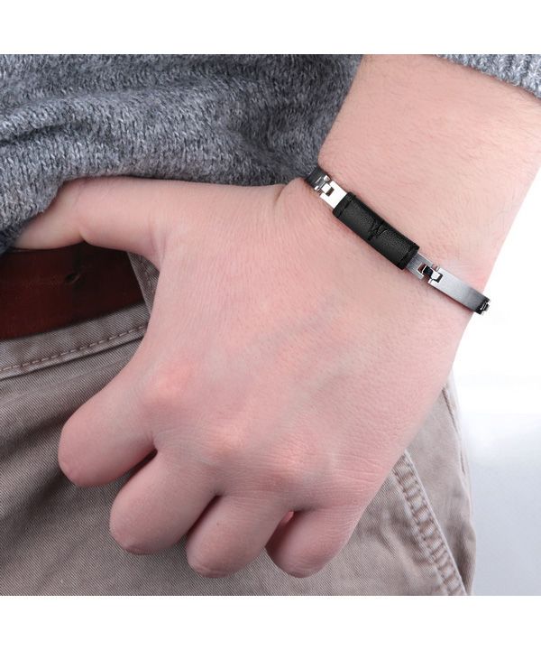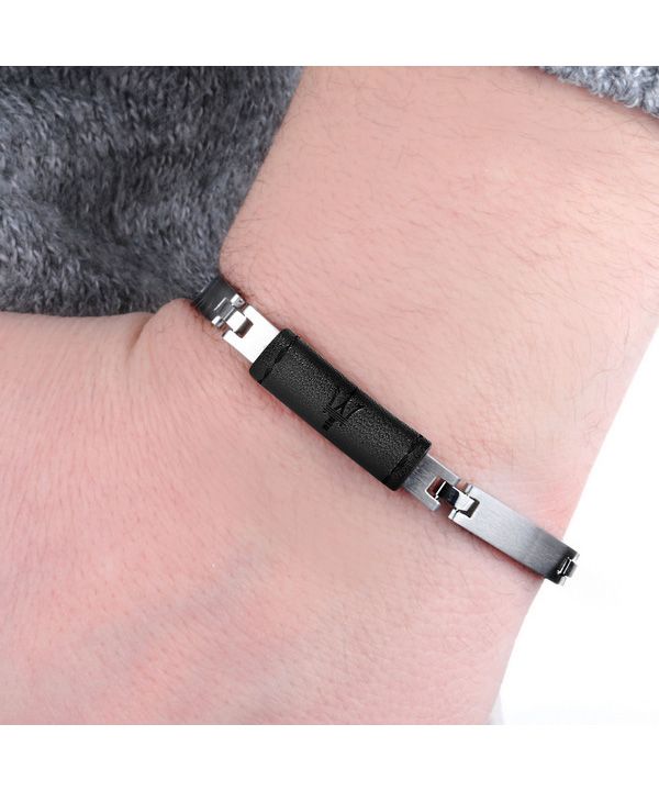 Maserati Jewels Leather And Stainless Steel JM218AMD04 Bracelet For Men