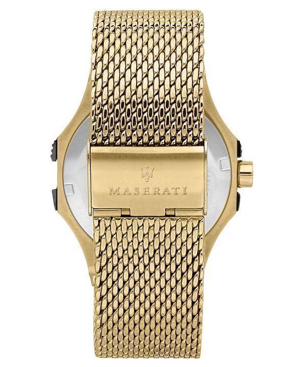 Maserati Potenza Gold Tone Stainless Steel Black Dial Quartz R8853108006 100M Mens Watch