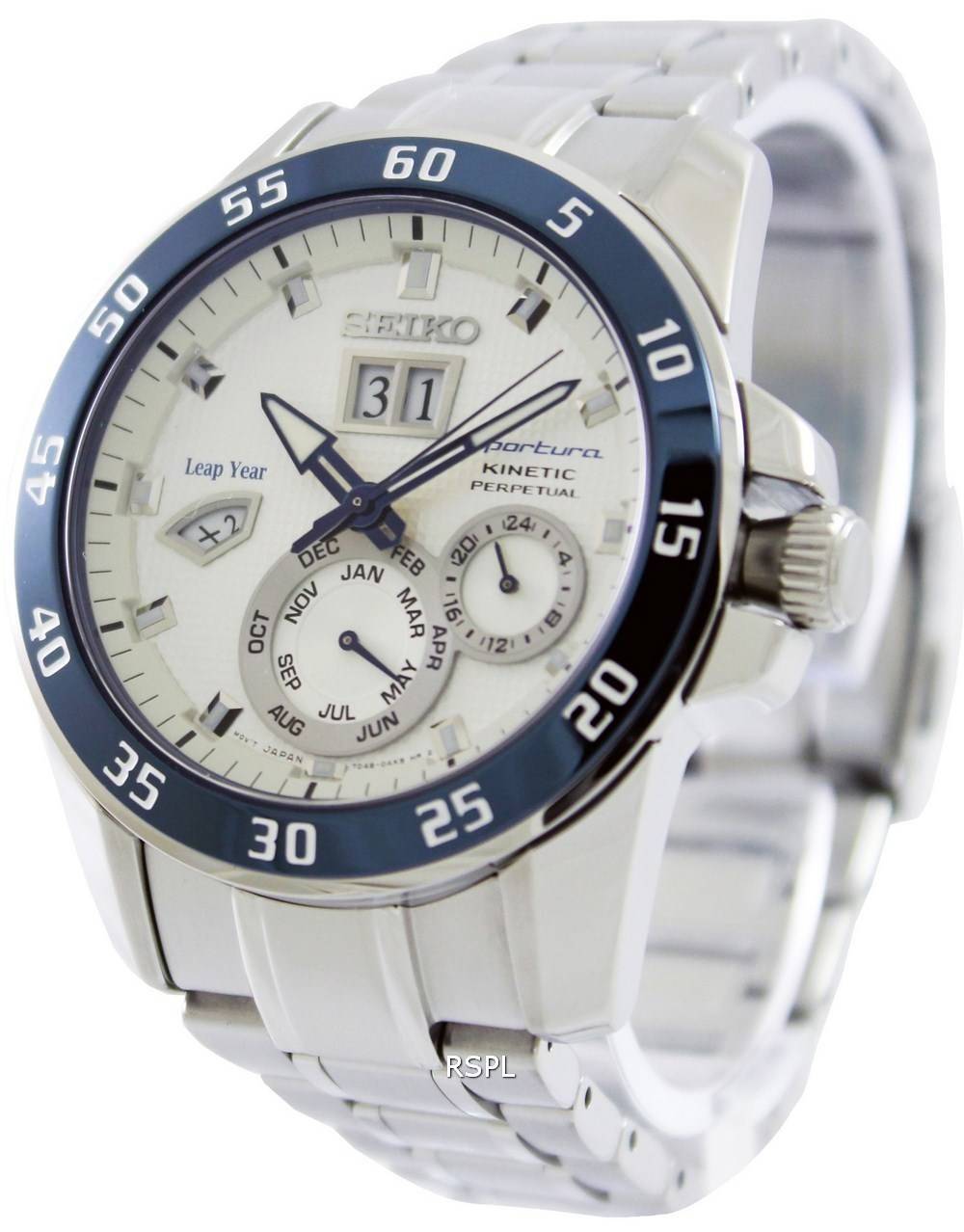 Refurbished Seiko Sportura Kinetic Perpetual SNP085 SNP085P1 SNP085P 100M Mens Watch
