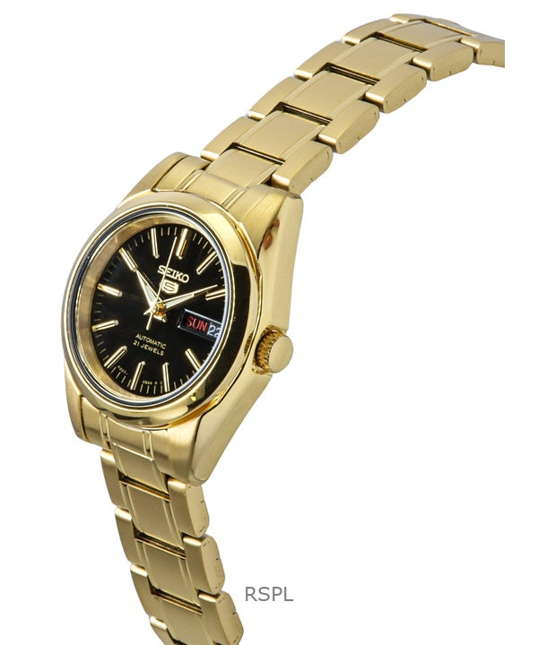 Seiko 5 Gold Tone Stainless Steel Black Dial 21 Jewels Automatic SYMK22K1 Women's Watch