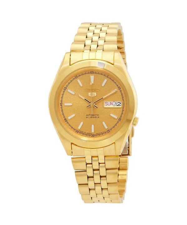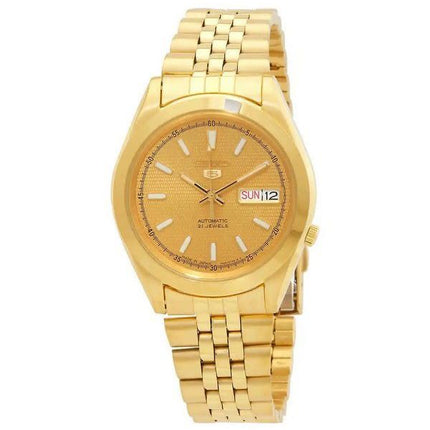 Seiko 5 Gold Tone Stainless Steel Gold Dial 21 Jewels Automatic SNXC34J5 Men's Watch