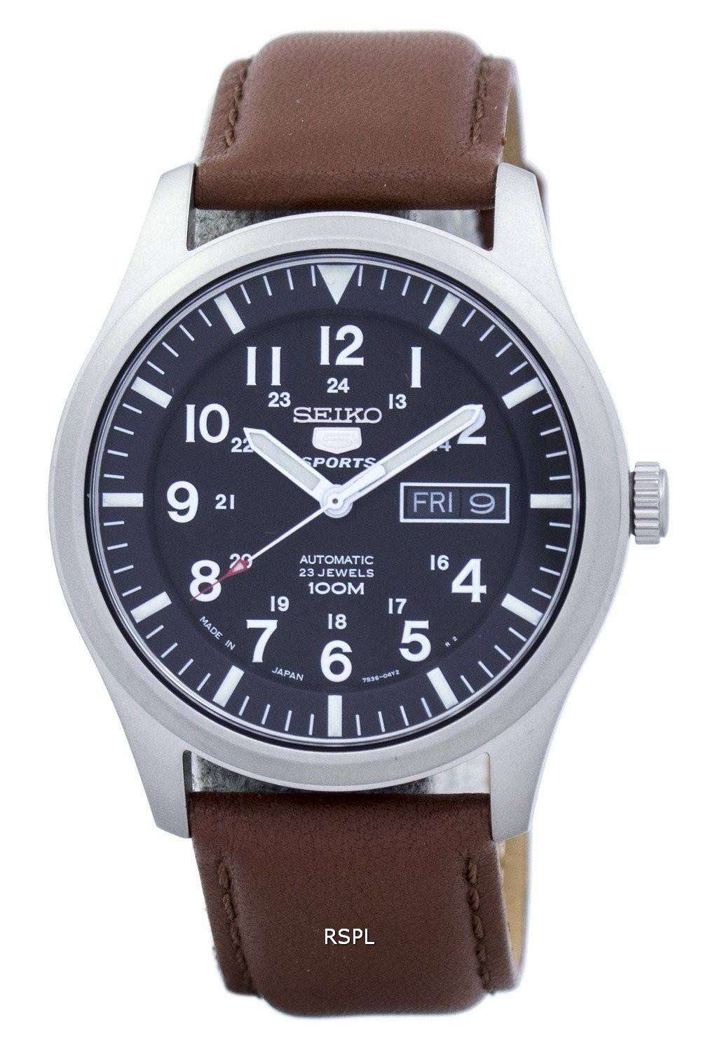 Seiko 5 Sports Automatic Japan Made Ratio Brown Leather SNZG15J1-LS12 Men's Watch