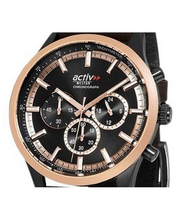 Westar Activ Chronograph Leather Strap Black Dial Quartz 90265BPN603 100M Men's Watch
