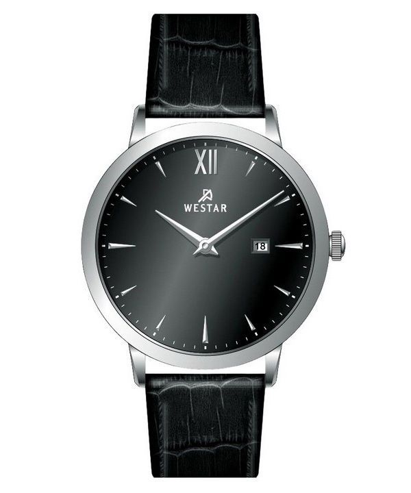 Westar Profile Leather Strap Black Dial Quartz 50214STN103 Mens Watch
