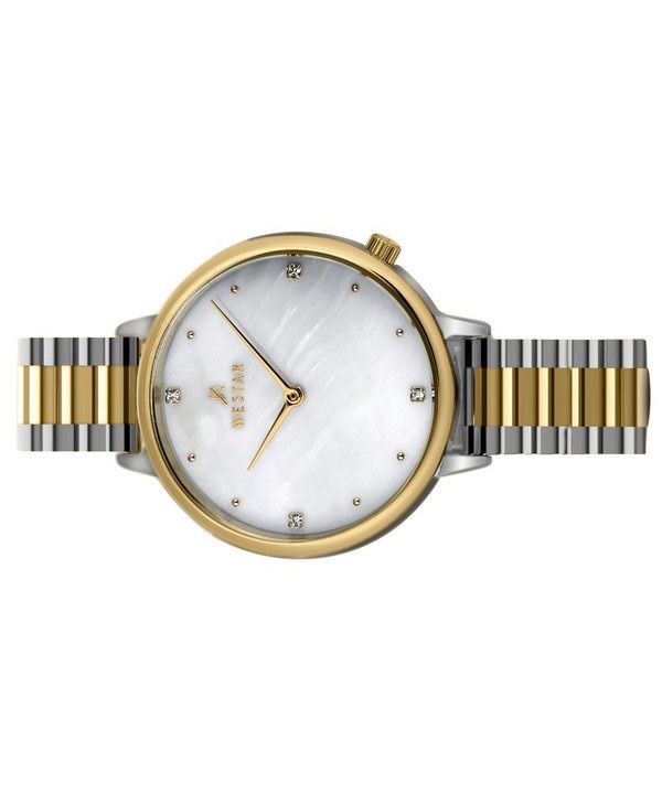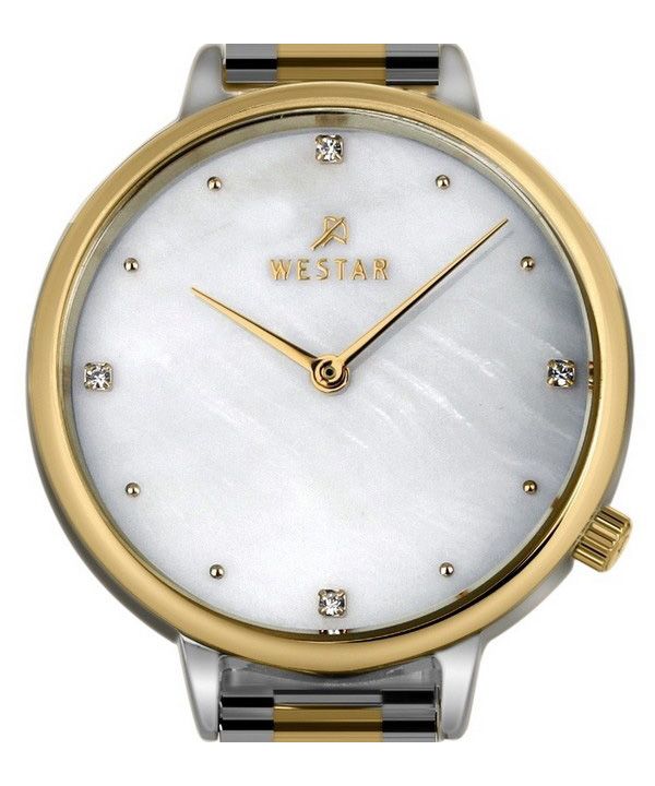 Westar Zing Crystal Accents Two Tone Stainless Steel White Mother Of Pearl Dial Quartz 00135CBN111 Women's Watch