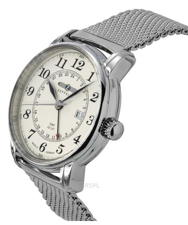 Zeppelin LZ127 Graf GMT Stainless Steel Beige Dial Quartz 7642M5 Men's Watch